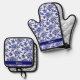 Blue and White Dahlia Flowers Toile de Jouy Oven Mitt & Pot Holder Set