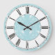 A pretty blue and white damask pattern with a roman numeral clock face.