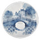 Blue and white Delft style landscape with blue flowers bouquet, trees, river, beautiful bridge and houses decoration for everybody who likes Delft style inspired decoration. It is a great gift ide for Christmas, birthdays etc. and you can decorate your home with this beautiful, unique design.