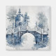 Blue and white Delft style landscape with blue plants, trees, river, beautiful bridge and a small church decoration for everybody who likes Delft style inspired decoration. It is a great gift ide for Christmas, birthdays etc. and you can decorate your home with this beautiful, unique design.