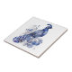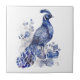 Blue and white Delft style peacock with flowers Tile