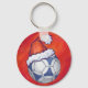 Blue and White Festive Soccer Ball on Red Key Ring