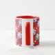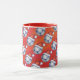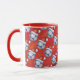 Blue and White Festive Soccer Ball Pattern on Red Mug