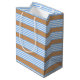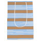 Blue and white five stripes pattern with tan medium gift bag