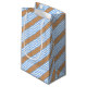 Blue and white five stripes pattern with tan small gift bag