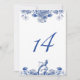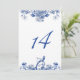 Create custom table number signs that match your wedding decor. These flat cards are ready to be customised with a table number and have blue and white illustrations of flowers and birds inspired by antique china patterns.