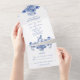 Blue and White Floral China Pattern with Bird All In One Invitation