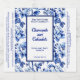 Blue and white floral cosmetics bottle label
