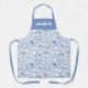 Here’s a wonderful way to add to the fun of baking. Add an extra spark to your culinary adventures whenever you wear this sophisticated chic, graphic, custom name apron. Light dusty French country blue boho block print flower and leaf pattern overlays a white background. In addition, bold modern typography overlays a dusty blue panel. Personalise with your name. Choose from 2 sizes: medium and large. A great gift for anyone who loves to cook!