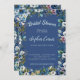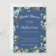 Introducing our elegant and modern bridal shower invitation featuring a beautiful border of blue and white wildflowers on a blue background. The design is perfect for a bride who loves a touch of nature and wants a sophisticated invitation for her bridal shower. The bride-to-be's name, the words "Bridal Shower," and registry information are all in a pretty shade of blue that complements the flowers, while the rest of the text is in a light grey that balances the design.