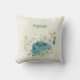 Beautiful romantic throw pillow featuring blue and white flowers and some pretty green leaves .