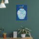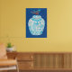 Print of handpainted Blue and white nature inspired ginger jar with Dragonfly on top on a blue background
