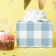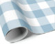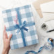 Light blue and white gingham pattern wrapping paper in a large scale. Appropriate to decorate gifts for different occasions.