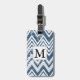 Blue and White Grunge Chevron Monogram Luggage Tag