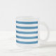Blue and White Horizontal Stripe Frosted Glass Coffee Mug