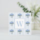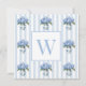 This beautiful tiny monogrammed note card features blue hydrangeas in a chinoiserie vases on a background of soft blue and white watercolor stripes. Personalize the monogram on the front with your choice of initial and name or special text on the back.