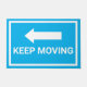 "Keep Moving" traffic sign in bright blue and white with a short left pointing arrow, directing people away! Customisable to point the arrow the other direction.