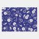 These wrapping paper sheets feature an aquatic-themed white on midnight blue pattern of koi fish in a pond full of lotus flowers with dragonflies flying above. You can resize and move the pattern around on each sheet to get the view you like best. The blue background can be changed to any other color you prefer. Make each sheet a different color!