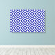 This bold blue and white geometric pattern is an original ornamental design. White meanders angle around dark blue diamonds containing white diamonds. Vibrant blue zigzags provide subtle separation between the winding paths.
