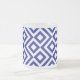 This bold blue and white geometric pattern is an original ornamental design. White meanders angle around dark blue diamonds containing white diamonds. Vibrant blue zigzags provide subtle separation between the winding paths.