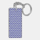 This bold blue and white geometric pattern is an original ornamental design. White meanders angle around dark blue diamonds containing white diamonds. Vibrant blue zigzags provide subtle separation between the winding paths.