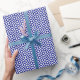 This bold blue and white geometric pattern is an original ornamental design. White meanders angle around dark blue diamonds containing white diamonds. Vibrant blue zigzags provide subtle separation between the winding paths.