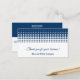 Blue and White Modern Combo Thank You & Appointment Card — Show your appreciation and provide an appointment reminder and options for rescheduling appointments. It features on the front a decorative blue and white half tone pattern, personalised service information, and a phone number and email for rescheduling and noting the date and time of the next scheduled appointment. It's ideal for service provider start ups, with the logo yet to come, while leaving a lasting impression. It is fully editable.