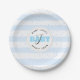 Blue and White Monogrammed Baby Stripes Paper Plate