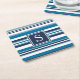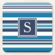 Blue and White Multi Stripe Monogram Square Paper Coaster
