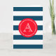 Blue and white striped navy pattern with red circle shape monogram decoration