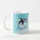 Introducing our Ocean Blue Orca Mug, the perfect companion for your morning coffee or afternoon tea. This mug showcases a stunning design with an ocean blue and light blue background, adorned with the captivating image of an orca emerging from the ocean. It's a fun and beautiful design that will instantly resonate with individuals who have a deep passion for orcas, killer whales, whales, the ocean, or the beach.