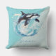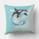 The ocean blue and light blue background of this pillow sets a tranquil scene, reminiscent of the vast expanse of the sea. Emerging from these serene waters is a magnificent orca, its powerful form leaping with grace and majesty. This fun and pretty design capture the spirit of these incredible creatures and evoke a sense of wonder.