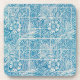 This plastic beverage coaster features a pretty blue and white ornamental floral pattern with the addition of a decorative grid pattern overlaying the floral design.
