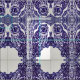Blue and White Owl Tile Intricate Medallion Fabric