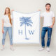 Blue and White Palm Palmetto Tree Monogram Fleece Blanket