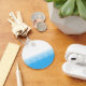 Blue and white dog paw prints on a newsprint, gradient, background. Original design.