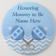 Blue and White Personalised Mummy to Be Button Pins. Type in YOUR TEXT along with Mummy to Be NAME or Delete any or all text. Adorable baby blue baby shower ideas to honour mummy to be. I can make colour changes to the baby blue background, baby rattles, chevron design and text COLORS.