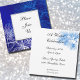 A custom Winter holiday invitation template with an elegant pattern of pine branches and pinecones in blue and white on an icy background of blues and violet. Click Customise It to change fonts or colours.