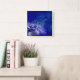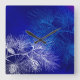 Winter holiday art with an elegant pattern of pine boughs and pinecones in blue and white on a background of deep blues and violets.