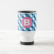 Blue and White Plaid Checked Pink Monogram Travel Mug