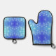 blue and white polka dot pattern on one side oven mitt & pot holder set