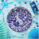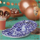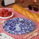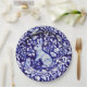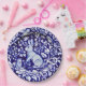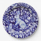 My original, copyrighted blue and white rabbit painting on ceramic is reinterpreted as an upscale paper plate.