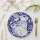 My original, copyrighted blue and white rabbit ceramic plate is reinterpreted as an upscale paper plate.