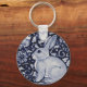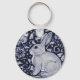 Blue and White Rabbit with Bird Tile Design Key Ring