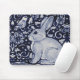 Blue and White Rabbit with Bird Tile Design Mouse Mat