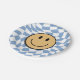 Blue and White Retro Chequered Birthday Boy Paper Plate