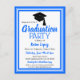 Mail this Blue and White School Colours Grad Party Postcard Invitation to family and friends to honour your high school or college graduate. Customise it with the grad's name, school, and party details. This stylish modern invite features black and blue school colours and a feminine script font.