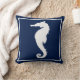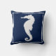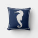 Blue and White Seahorse Coastal Nautical Beach Cushion