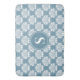 Bring a touch of coastal elegance to your bathroom with this beautiful blue and white seashell pattern. This sophisticated display features white seashells on a calming blue backdrop, creating a serene and stylish atmosphere. Add your initial to the central circle for a unique touch. This plush and absorbent product is visually appealing and provides a comfortable, safe surface. Enhance your home with this stylish, ocean-inspired accent.