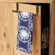 Shibori is the Japanese technique for tie-dying. This watercolor look pattern features white discs or circles on a navy blue background